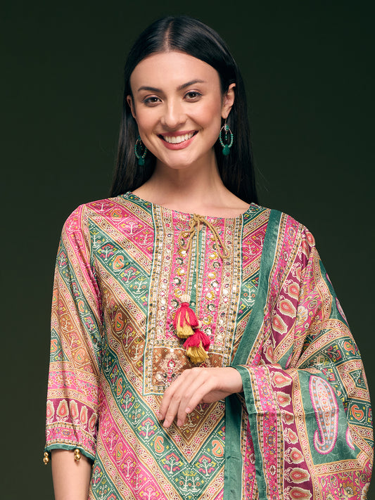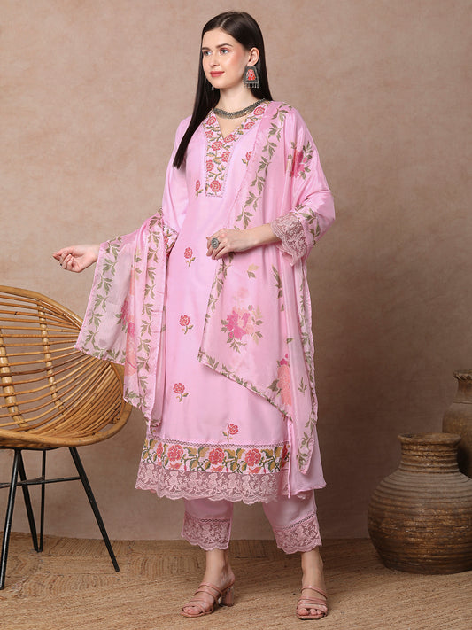 Festive Ethnic Embroidered Straight Kurta with Pant...