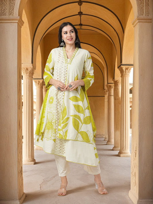 MRP (Inclusive of all taxes)Regular price ₹ 2,449.00₹ 2,449.00 Regular priceUnit price / per₹ 2,449.00Sale priceM L XL 2XL 3XL add to cart{"id":7689067233366,"title":"Floral Printed Straight Fit Kurta with Palazzo and Dupatta - Lime Green","handle":"floral-printed-straight-fit-kurta-with-palazzo-and-dupatta-lime-green-1","description":"\u003ch1\u003eHighlights\u003c\/h1\u003e\n\u003cp\u003e\u003cbr\u003e\u003cbr\u003e-Breeze through summer in style with this Lime Green Floral Printed Straight-Fit Kurta Set. Crafted from pure cotton for all-day comfort, it features a round neckline and delicate floral prints that exude effortless elegance. Paired with a matching palazzo and a beautifully printed cotton dupatta, this ensemble brings together grace and ease—perfect for festive gatherings or casual chic days.\u003c\/p\u003e\n\u003ch1\u003e\n\u003cbr\u003eFabric \u0026amp; Colour\u003c\/h1\u003e\n\u003cp\u003e\u003cbr\u003eTop Colour: Lime Green\u003cbr\u003eTop Fabric: Cotton\u003cbr\u003eBottom Colour: Lime Green\u003cbr\u003eBottom Fabric: Cotton Blend\u003cbr\u003eDupatta Colour: Lime Green\u003cbr\u003eDupatta Fabric: Pure Cotton\u003c\/p\u003e\n\u003ch1\u003eSpecifications\u003c\/h1\u003e\n\u003cp\u003e\u003cbr\u003eTop Design: Floral print\u003cbr\u003eTop Craft: Plain and Prints\u003cbr\u003eTop Shape: Straight\u003cbr\u003eNeck: Round Neck\u003cbr\u003eSleeve Length: Three-Quarter Sleeves\u003cbr\u003eTop Length: Calf Length\u003cbr\u003eHemline: Straight\u003cbr\u003eSlit: Side Slits\u003c\/p\u003e\n\u003cp\u003eBottom Type: Palazzos\u003cbr\u003eBottom Closure: Drawstring\u003cbr\u003eWaistband: Partially Elasticated\u003c\/p\u003e\n\u003cp\u003eDupatta Pattern: Printed\u003cbr\u003eDupatta Border: Solid\u003c\/p\u003e\n\u003cp\u003eWash Care: Machine Wash\u003c\/p\u003e\n\u003cp\u003eLength (in inches)\u003cbr\u003eKurta – 45, Sleeves – 17,\u003cbr\u003eBottom – 38\u003c\/p\u003e\n\u003cp\u003eModel’s Height: 5’7”. Wearing Size S.\u003c\/p\u003e\n\u003ch1\u003eProduct Information\u003c\/h1\u003e\n\u003cp\u003e\u003cbr\u003eManufactured\/Packed\/Marketed By:\u003cbr\u003eFashor Lifestyle Pvt. Ltd.\u003cbr\u003e28\/30, Sudarshanpura Industrial Area,\u003cbr\u003eJaipur - 302006.\u003cbr\u003eCountry of Origin: India\u003c\/p\u003e","published_at":"2025-10-27T09:03:20+05:30","created_at":"2025-10-27T08:52:22+05:30","vendor":"FASHOR","type":"3P Kurta Set","tags":["2001-3000","2XL","32172","3XL","All Styles","casualwear","colour_Green","craft_plain-and-prints","design_floral-print","fabric_cotton","festivewear","KURTI","kurtis","L","M","meta-size-chart-","now-trending","rakhi","shape_straight","XL"],"price":244900,"price_min":244900,"price_max":244900,"available":true,"price_varies":false,"compare_at_price":244900,"compare_at_price_min":244900,"compare_at_price_max":244900,"compare_at_price_varies":false,"variants":[{"id":43540502118486,"title":"M","option1":"M","option2":null,"option3":null,"sku":"38-ST032172G5FS","requires_shipping":true,"taxable":false,"featured_image":{"id":35468616302678,"product_id":7689067233366,"position":3,"created_at":"2025-10-27T08:53:27+05:30","updated_at":"2025-10-27T08:53:45+05:30","alt":null,"width":1080,"height":1440,"src":"\/\/fashor.com\/cdn\/shop\/files\/32560_1.jpg?v=1761535425","variant_ids":[43540502118486,43540502151254,43540502184022,43540502216790,43540502249558]},"available":true,"name":"Floral Printed Straight Fit Kurta with Palazzo and Dupatta - Lime Green - M","public_title":"M","options":["M"],"price":244900,"weight":0,"compare_at_price":244900,"inventory_quantity":1,"inventory_management":"shopify","inventory_policy":"deny","barcode":"","featured_media":{"alt":null,"id":27572557938774,"position":3,"preview_image":{"aspect_ratio":0.75,"height":1440,"width":1080,"src":"\/\/fashor.com\/cdn\/shop\/files\/32560_1.jpg?v=1761535425"}},"requires_selling_plan":false,"selling_plan_allocations":[],"quantity_rule":{"min":1,"max":null,"increment":1}},{"id":43540502151254,"title":"L","option1":"L","option2":null,"option3":null,"sku":"40-ST032172G5FS","requires_shipping":true,"taxable":false,"featured_image":{"id":35468616302678,"product_id":7689067233366,"position":3,"created_at":"2025-10-27T08:53:27+05:30","updated_at":"2025-10-27T08:53:45+05:30","alt":null,"width":1080,"height":1440,"src":"\/\/fashor.com\/cdn\/shop\/files\/32560_1.jpg?v=1761535425","variant_ids":[43540502118486,43540502151254,43540502184022,43540502216790,43540502249558]},"available":true,"name":"Floral Printed Straight Fit Kurta with Palazzo and Dupatta - Lime Green - L","public_title":"L","options":["L"],"price":244900,"weight":0,"compare_at_price":244900,"inventory_quantity":1,"inventory_management":"shopify","inventory_policy":"deny","barcode":"","featured_media":{"alt":null,"id":27572557938774,"position":3,"preview_image":{"aspect_ratio":0.75,"height":1440,"width":1080,"src":"\/\/fashor.com\/cdn\/shop\/files\/32560_1.jpg?v=1761535425"}},"requires_selling_plan":false,"selling_plan_allocations":[],"quantity_rule":{"min":1,"max":null,"increment":1}},{"id":43540502184022,"title":"XL","option1":"XL","option2":null,"option3":null,"sku":"42-ST032172G5FS","requires_shipping":true,"taxable":false,"featured_image":{"id":35468616302678,"product_id":7689067233366,"position":3,"created_at":"2025-10-27T08:53:27+05:30","updated_at":"2025-10-27T08:53:45+05:30","alt":null,"width":1080,"height":1440,"src":"\/\/fashor.com\/cdn\/shop\/files\/32560_1.jpg?v=1761535425","variant_ids":[43540502118486,43540502151254,43540502184022,43540502216790,43540502249558]},"available":true,"name":"Floral Printed Straight Fit Kurta with Palazzo and Dupatta - Lime Green - XL","public_title":"XL","options":["XL"],"price":244900,"weight":0,"compare_at_price":244900,"inventory_quantity":2,"inventory_management":"shopify","inventory_policy":"deny","barcode":"","featured_media":{"alt":null,"id":27572557938774,"position":3,"preview_image":{"aspect_ratio":0.75,"height":1440,"width":1080,"src":"\/\/fasho
