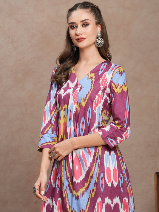 • Ethnic Foil & Leheriya Printed Kurta with...