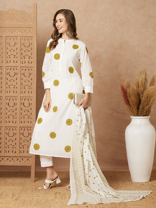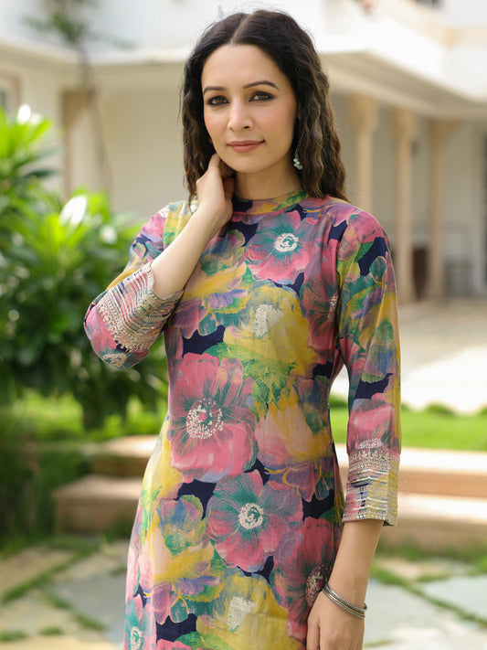 Floral Printed Zari & Sequins Embroidered Kurta...