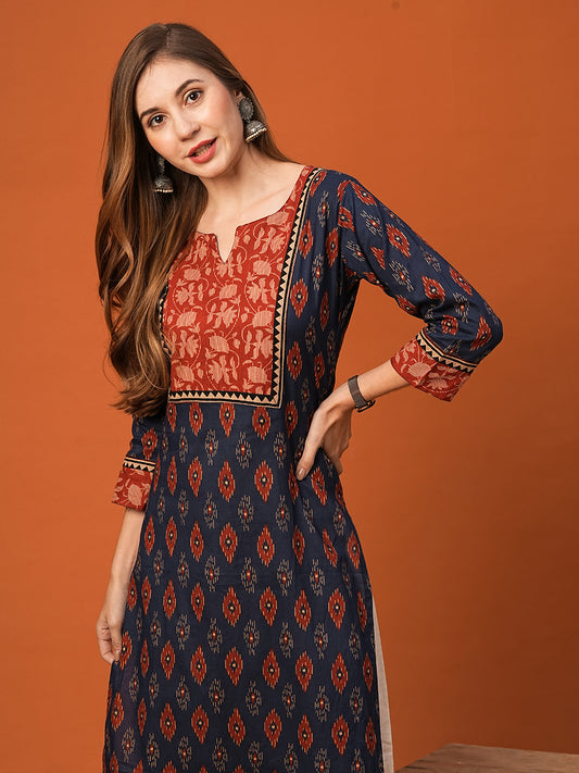Solid Ethnic Embroidered Straight Fit Kurta with...