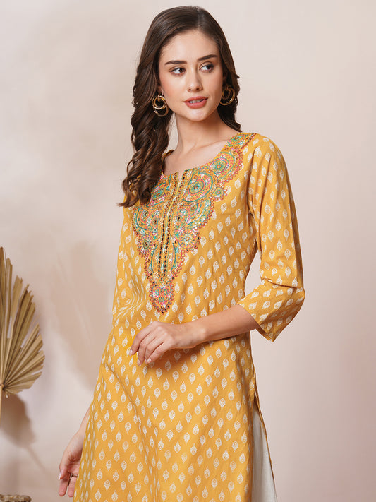 Ethnic Printed & Embroidered Straight Fit Kurta...