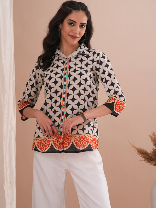Ethnic Floral Printed Straight Fit Shirt with...