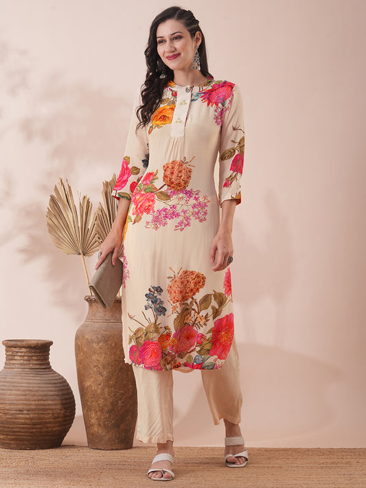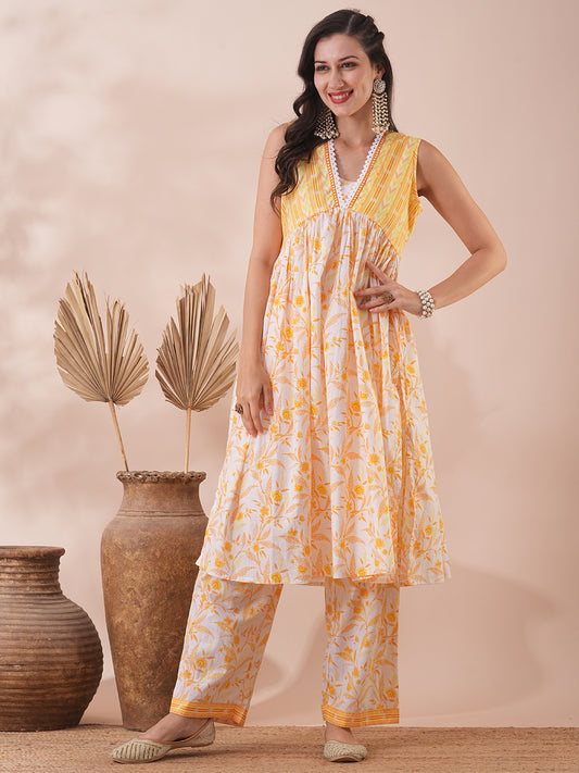 Ethnic Floral & Stripes Printed A-Line Co-ord...