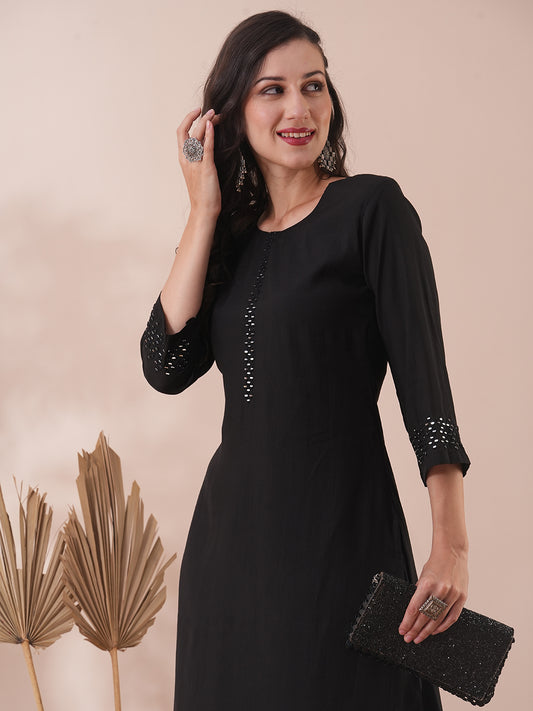 Solid Mirror Embroidered Straight Fit Kurta with...