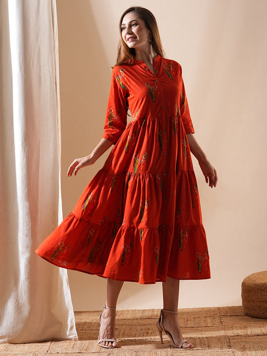 Kalighat Ethnic Printed A-Line Tiered Flared Midi...