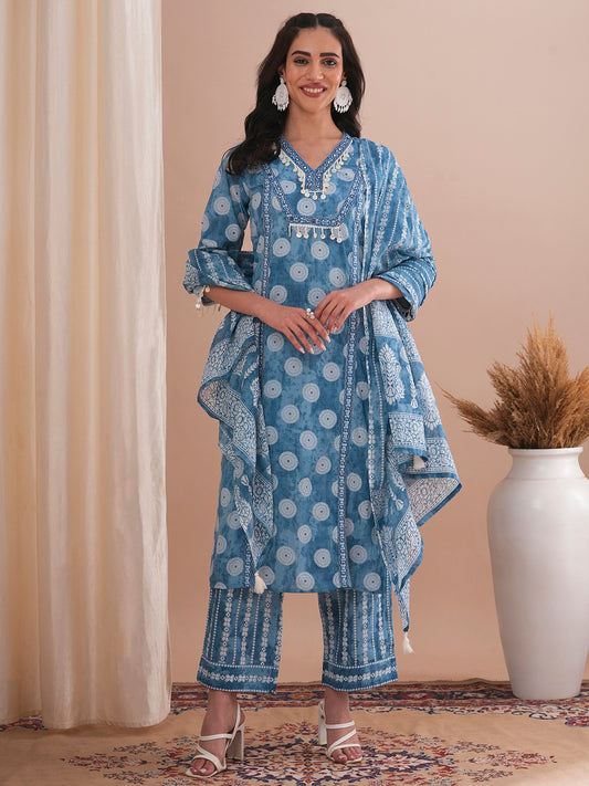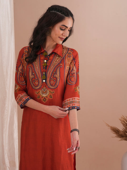 Ethnic Printed Straight Fit Kurta with Palazzo...