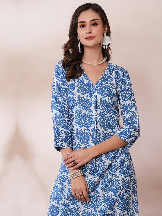 Abstract Printed A-Line Co-ord Set - Blue