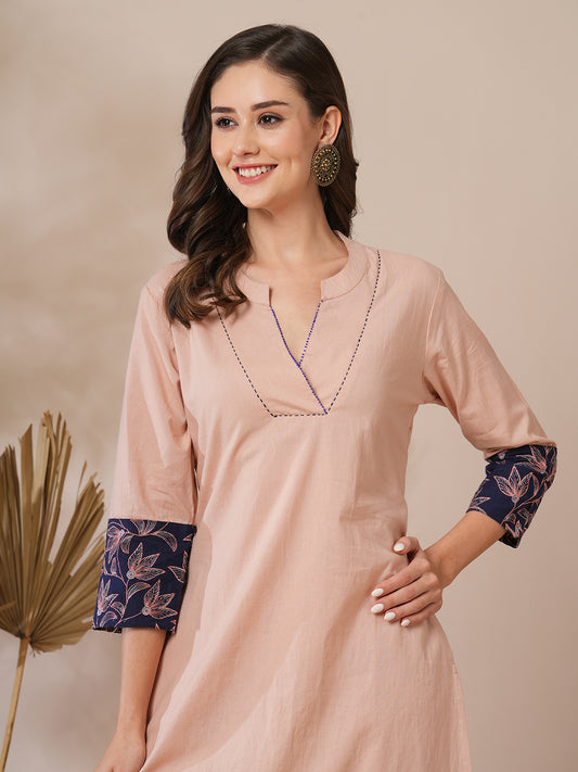 Floral Foil Printed A-line Kurta - Peach...