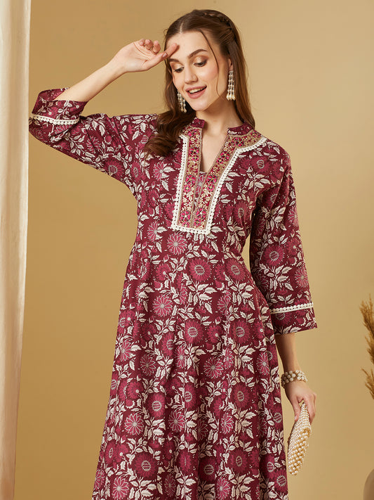 Ethnic Floral Printed & Embroidered Anarkali Flared...