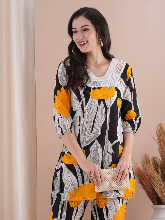 Abstract Floral Printed Straight Fit Co-ord Set...