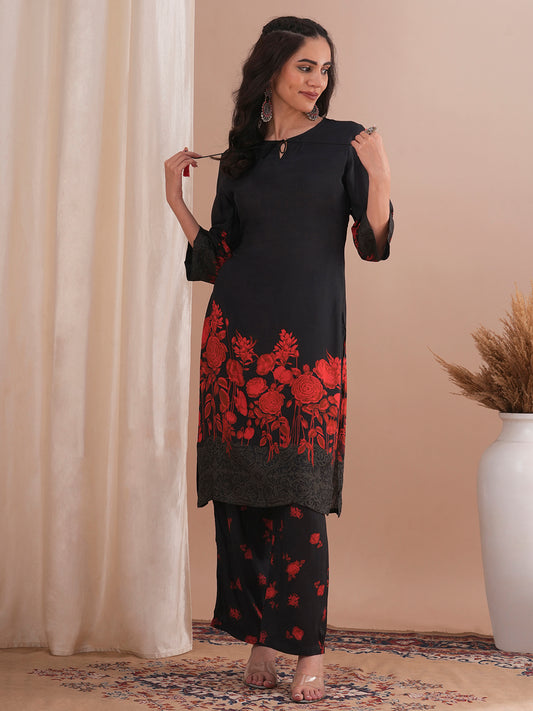 Ethnic Floral Printed A-Line Paneled Kurta with...