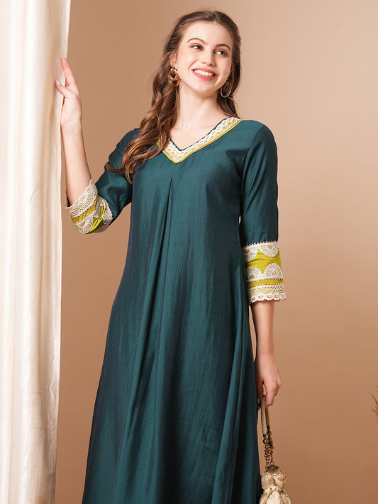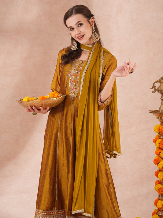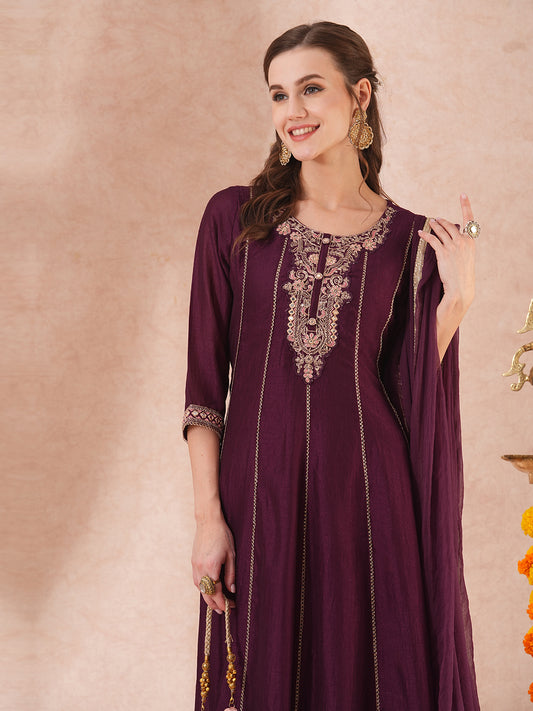 Solid Ethnic Embroidered Anarkali Flared Kurta with...