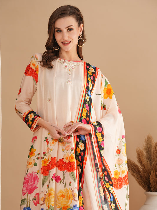 Floral Printed & Embroidered Anarkali Flared Kurta...