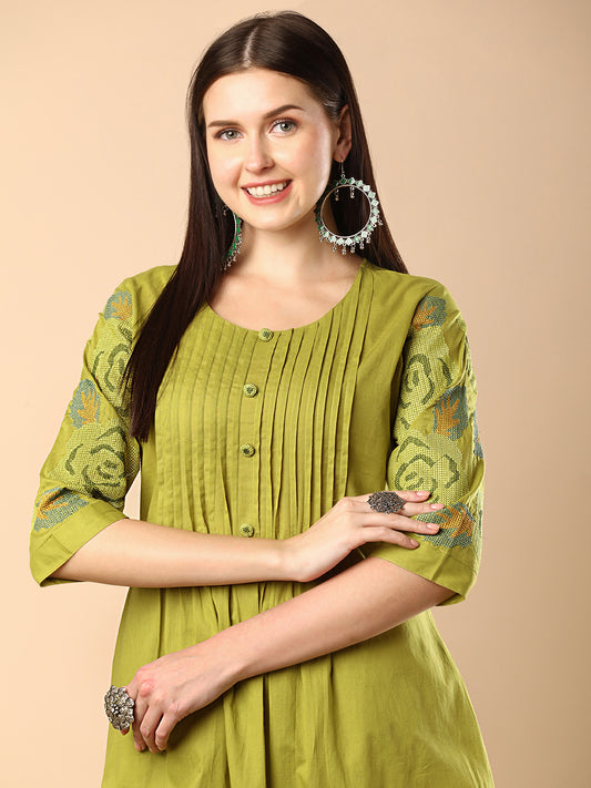 • Solid Floral Hand Embroidered Straight Fit Kurta...