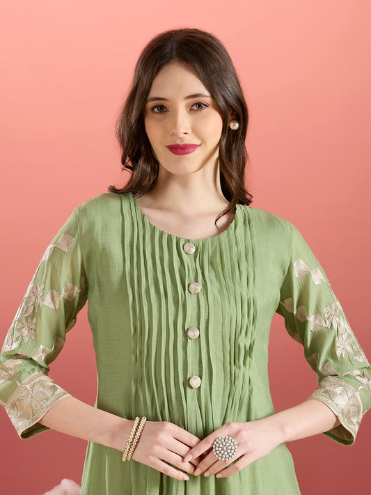 • Solid Mirror Work A-Line Kurta with Palazzo...