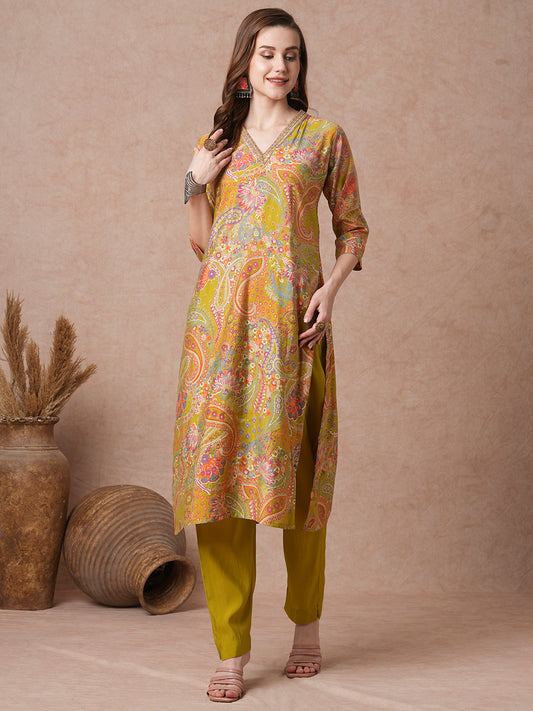 Ethnic Floral Foil Printed Straight Kurta with...