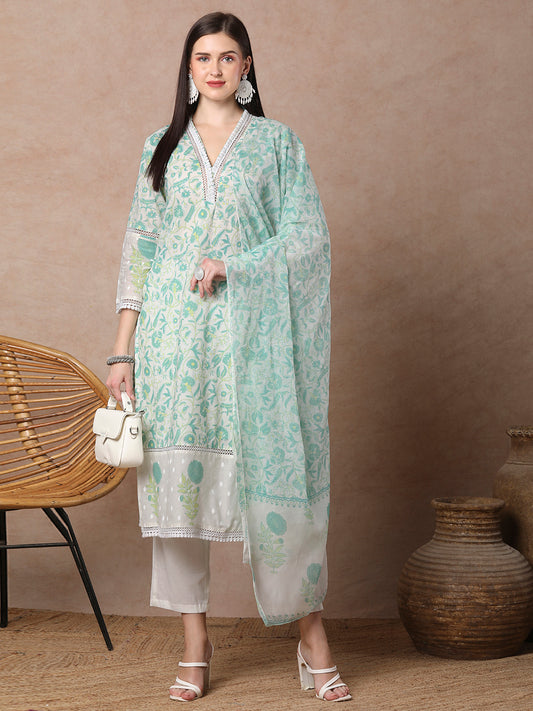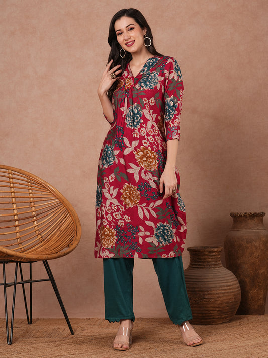 Ethnic Floral Printed Straight Fit Kurta with...