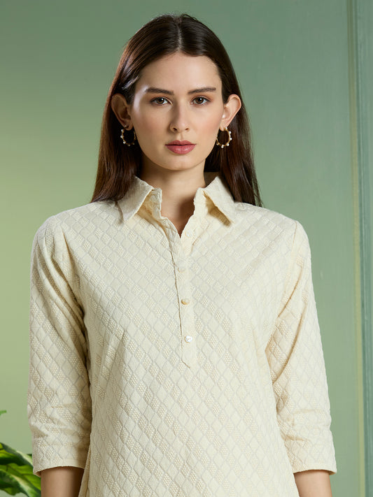 Solid Ethnic Embodied Straight Fit Kurta with...