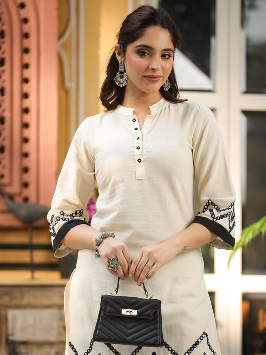 Solid Mirror Embroidered Straight Fit Kurta with...