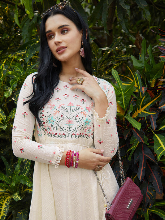 Floral Embroidered Anarkali Flared Maxi Dress -...