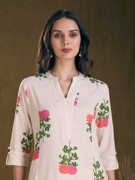 Ethnic Floral Printed Pleated Straight Fit Kurti...