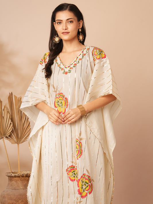 Solid Gota Striped & Floral Printed Kaftan...