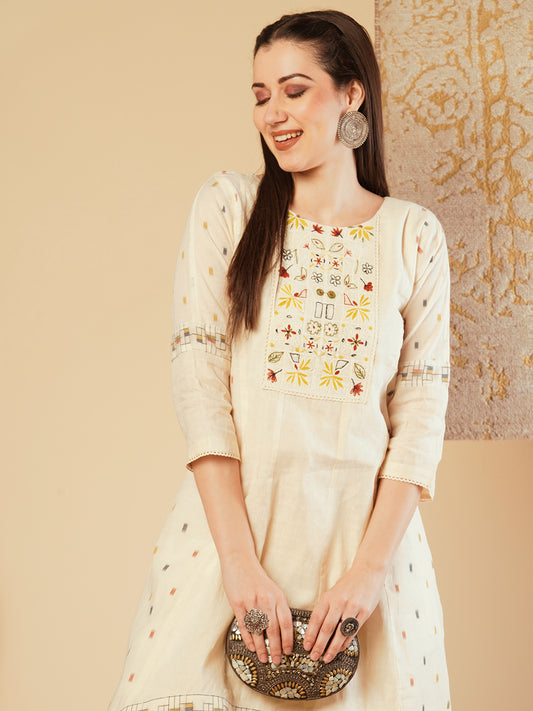 Solid Floral Embroidered Straight Fit Kurta with...