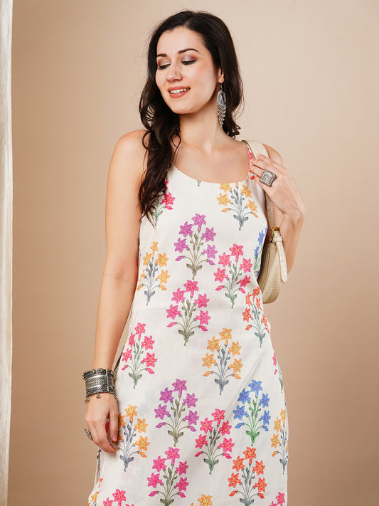 Floral Block printed Straight Fit Kurta with...