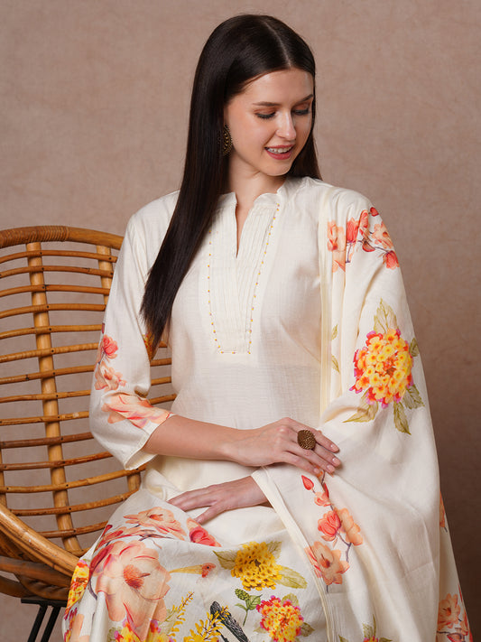 MRP (Inclusive of all taxes)Regular price ₹ 1,999.00₹ 1,999.00 Regular priceUnit price / per₹ 4,999.00Sale priceM L XL 2XL add to cartSale{"id":7549403889750,"title":"Ethnic Printed Straight Cut Cotton Kurta with Pant \u0026 Printed Dupatta - Off White","handle":"ethnic-printed-straight-cut-cotton-kurta-with-pant-printed-dupatta-off-white","description":"\u003ch1\u003eHighlights\u003c\/h1\u003e\n\u003cp\u003e\u003cbr\u003eAdd timeless elegance to your wardrobe with the Ethnic Embroidered Straight Cut Kurta with Pant \u0026amp; Printed Dupatta. This off-white cotton blend kurta features a straight-cut design with a round neckline and three-quarter sleeves, accented with subtle thread work yoke at the front. Paired with matching trousers and a multi colored ethnic floral printed dupatta, this set offers a perfect blend of solid and printed elements, ideal for everyday wear or office settings.\u003c\/p\u003e\n\u003ch1\u003eFabric \u0026amp; Colour\u003c\/h1\u003e\n\u003cp\u003e\u003cbr\u003eTop Colour: Off White\u003cbr\u003eTop Fabric: Cotton\u003cbr\u003eBottom Colour: Off White\u003cbr\u003eBottom Fabric: Cotton Blend\u003cbr\u003eDupatta Colour: Multi\u003cbr\u003eDupatta Fabric: Cotton Blend\u003c\/p\u003e\n\u003ch1\u003eSpecifications\u003c\/h1\u003e\n\u003cp\u003e\u003cbr\u003eTop Design: Solid\u003cbr\u003eTop Craft: Plain and Prints\u003cbr\u003eTop Shape: Straight\u003cbr\u003eNeck: Round Neck\u003cbr\u003eSleeve Length: Three-Quarter Sleeves\u003cbr\u003eTop Length: Knee Length\u003cbr\u003eHemline: Straight\u003cbr\u003eSlit: Side Slits\u003c\/p\u003e\n\u003cp\u003eBottom Type: Trousers\u003cbr\u003eBottom Closure: Slip-On\u003cbr\u003eWaistband: Partially Elasticated\u003c\/p\u003e\n\u003cp\u003eDupatta Pattern: Printed\u003cbr\u003eDupatta Border: Printed\u003c\/p\u003e\n\u003cp\u003eWash Care: Hand Wash\u003c\/p\u003e\n\u003cp\u003eLength (in inches)\u003cbr\u003eKurta – 46, Sleeves – 17,\u003cbr\u003eBottom – 38\u003c\/p\u003e\n\u003cp\u003eModel’s Height: 5’7”. Wearing Size S.\u003c\/p\u003e\n\u003ch1\u003eProduct Information\u003c\/h1\u003e\n\u003cp\u003e\u003cbr\u003eManufactured\/Packed\/Marketed By:\u003cbr\u003eFashor Lifestyle Pvt. Ltd.\u003cbr\u003e28\/30, Sudarshanpura Industrial Area,\u003cbr\u003eJaipur - 302006.\u003cbr\u003eCountry of Origin: India\u003c\/p\u003e","published_at":"2025-05-08T06:18:51+05:30","created_at":"2025-05-06T15:42:53+05:30","vendor":"FASHOR","type":"3P Kurta Set","tags":["1001-2000","2XL","30441","All Styles","casualwear","colour_white","craft_plain-and-prints","design_solid","fabric_cotton","KURTI","kurtis","L","M","meta-size-chart-","now-trending","shape_straight"],"price":199900,"price_min":199900,"price_max":199900,"available":true,"price_varies":false,"compare_at_price":499900,"compare_at_price_min":499900,"compare_at_price_max":499900,"compare_at_price_varies":false,"variants":[{"id":42288021045334,"title":"M","option1":"M","option2":null,"option3":null,"sku":"38-ST030441C5FS","requires_shipping":true,"taxable":false,"featured_image":{"id":34349959512150,"product_id":7549403889750,"position":5,"created_at":"2025-05-06T15:43:25+05:30","updated_at":"2025-05-06T15:44:01+05:30","alt":null,"width":1080,"height":1440,"src":"\/\/fashor.com\/cdn\/shop\/files\/30862_9.jpg?v=1746526441","variant_ids":[42288021045334,42288021078102,42288021110870,42288021143638]},"available":true,"name":"Ethnic Printed Straight Cut Cotton Kurta with Pant \u0026 Printed Dupatta - Off White - M","public_title":"M","options":["M"],"price":199900,"weight":0,"compare_at_price":499900,"inventory_quantity":1,"inventory_management":"shopify","inventory_policy":"deny","barcode":"","featured_media":{"alt":null,"id":26715331002454,"position":5,"preview_image":{"aspect_ratio":0.75,"height":1440,"width":1080,"src":"\/\/fashor.com\/cdn\/shop\/files\/30862_9.jpg?v=1746526441"}},"requires_selling_plan":false,"selling_plan_allocations":[],"quantity_rule":{"min":1,"max":null,"increment":1}},{"id":42288021078102,"title":"L","option1":"L","option2":null,"option3":null,"sku":"40-ST030441C5FS","requires_shipping":true,"taxable":false,"featured_image":{"id":34349959512150,"product_id":7549403889750,"position":5,"created_at":"2025-05-06T15:43:25+05:30","updated_at":"2025-05-06T15:44:01+05:30","alt":null,"width":1080,"height":1440,"src":"\/\/fashor.com\/cdn\/shop\/files\/30862_9.jpg?v=1746526441","variant_ids":[42288021045334,42288021078102,42288021110870,42288021143638]},"available":true,"name":"Ethnic Printed Straight Cut Cotton Kurta with Pant \u0026 Printed Dupatta - Off White - L","public_title":"L","options":["L"],"price":199900,"weight":0,"compare_at_price":499900,"inventory_quantity":1,"inventory_management":"shopify","inventory_policy":"deny","barcode":"","featured_media":{"alt":null,"id":26715331002454,"position":5,"preview_image":{"aspect_ratio":0.75,"height":1440,"width":1080,"src":"\/\/fashor.com\/cdn\/shop\/files\/30862_9.jpg?v=1746526441"}},"requires_selling_plan":false,"selling_plan_allocations":[],"quantity_rule":{"min":1,"max":null,"increment":1}},{"id":42288021110870,"title":"XL","option1":"XL","option2":null,"option3":null,"sku":"42-ST030441C5FS","requires_shipping":true,"taxable":false,"featured_image":{"id":34349959512150,"product_id":7549403889750,"position":5,"created_at":"2025-05-06T15:43:25+05:30","updated_at":"2025-05-06T15:44:01+05:30","alt":null,"width":1080,"height":1440,"src":"\/\/fashor.com\/cdn\/shop\/files\/30862_9.jpg?v=1746526441","variant_ids":[42288021045334,42288021078102,42288021110870,42288021143638]},"available":false,"name":"Ethnic Printed Straight Cut Cotton Kurta with Pant \u0026 Printed Dupatta - Off White - XL","public_title":"XL","options":["XL"],"price":199900,"weight":0,"compare_at_price":499900,"inventory_quantity":0,"inventory_management":"shopify","inventory_policy":"deny","barcode":"","featured_media":{"alt":null,"id":26715331002454,"position":5,"preview_image":{"aspect_ratio":0.75,"height":1440,"width":1080,"src":