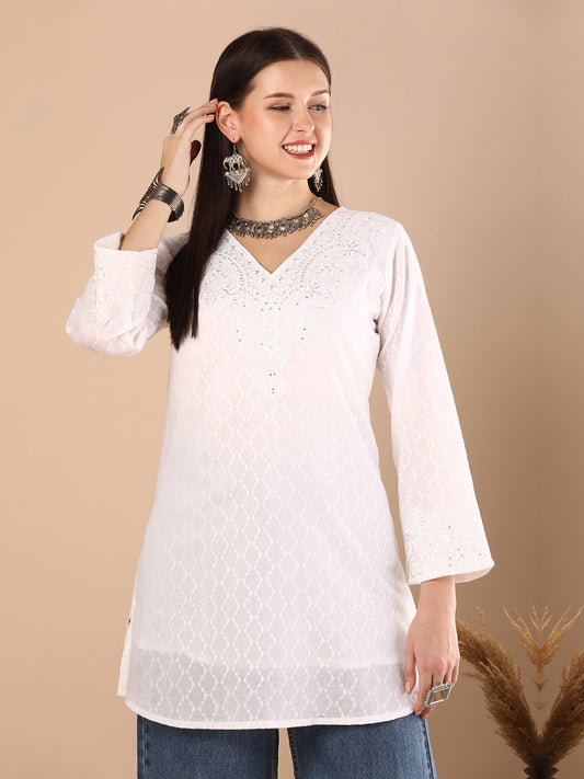 MRP (Inclusive of all taxes)Regular price ₹ 899.00₹ 899.00 Regular priceUnit price / per₹ 3,299.00Sale priceM L XL 2XL 3XL add to cartSale{"id":7528929067094,"title":"Solid Floral Embroidered Straight Fit Kurti - White","handle":"solid-floral-embroidered-straight-fit-kurti-white","description":"\u003ch1\u003eHighlights\u003c\/h1\u003e\n\u003cp\u003e\u003cbr\u003e-This straight fit kurti with floral embroidered yoke and sleeves is an ideal fit for everyday wear\u003c\/p\u003e\n\u003ch1\u003eFabric \u0026amp; Colour\u003c\/h1\u003e\n\u003cp\u003e\u003cbr\u003eColour: White\u003cbr\u003eFabric: Cotton\u003c\/p\u003e\n\u003ch1\u003eSpecifications\u003c\/h1\u003e\n\u003cp\u003e\u003cbr\u003eDesign: Solid\u003cbr\u003eCraft: Embroidery, Plain and Prints\u003cbr\u003eShape: A-line\u003cbr\u003eNeck: V-Neck\u003cbr\u003eSleeve Length: Three-Quarter Sleeves\u003cbr\u003eTop Length: Above Knee\u003cbr\u003eHemline: Straight\u003cbr\u003eSlit: Side Slits\u003c\/p\u003e\n\u003cp\u003eWash Care: Hand Wash\u003c\/p\u003e\n\u003cp\u003eLength (in inches)\u003cbr\u003eKurta – 32, Sleeves – 21\u003c\/p\u003e\n\u003cp\u003eModel’s Height: 5’7”. Wearing Size S.\u003c\/p\u003e\n\u003ch1\u003eProduct Information\u003c\/h1\u003e\n\u003cp\u003e\u003cbr\u003eManufactured\/Packed\/Marketed By:\u003cbr\u003eFashor Lifestyle Pvt. Ltd.\u003cbr\u003e28\/30, Sudarshanpura Industrial Area,\u003cbr\u003eJaipur - 302006.\u003cbr\u003eCountry of Origin: India\u003c\/p\u003e","published_at":"2025-03-28T17:10:56+05:30","created_at":"2025-03-27T16:50:49+05:30","vendor":"FASHOR","type":"Kurti\/Tunics","tags":["1001-2000","29240","2XL","All Styles","casualwear","colour_white","craft_embroidery","craft_plain-and-prints","design_solid","discount-zone","fabric_cotton","KURTI","kurtis","meta-size-chart-","offer-zone","shape_a-line","single-kurta","under-1000","workwear"],"price":89900,"price_min":89900,"price_max":89900,"available":true,"price_varies":false,"compare_at_price":329900,"compare_at_price_min":329900,"compare_at_price_max":329900,"compare_at_price_varies":false,"variants":[{"id":42211297722454,"title":"M","option1":"M","option2":null,"option3":null,"sku":"38-KUA29240B5FS","requires_shipping":true,"taxable":false,"featured_image":{"id":34208046153814,"product_id":7528929067094,"position":4,"created_at":"2025-03-27T16:51:11+05:30","updated_at":"2025-06-09T18:33:45+05:30","alt":null,"width":1080,"height":1440,"src":"\/\/fashor.com\/cdn\/shop\/files\/30254_7.jpg?v=1749474225","variant_ids":[42211297722454,42211297755222,42211297787990,42211297820758,42211297853526]},"available":false,"name":"Solid Floral Embroidered Straight Fit Kurti - White - M","public_title":"M","options":["M"],"price":89900,"weight":0,"compare_at_price":329900,"inventory_quantity":0,"inventory_management":"shopify","inventory_policy":"deny","barcode":null,"featured_media":{"alt":null,"id":26609435902038,"position":4,"preview_image":{"aspect_ratio":0.75,"height":1440,"width":1080,"src":"\/\/fashor.com\/cdn\/shop\/files\/30254_7.jpg?v=1749474225"}},"requires_selling_plan":false,"selling_plan_allocations":[],"quantity_rule":{"min":1,"max":null,"increment":1}},{"id":42211297755222,"title":"L","option1":"L","option2":null,"option3":null,"sku":"40-KUA29240B5FS","requires_shipping":true,"taxable":false,"featured_image":{"id":34208046153814,"product_id":7528929067094,"position":4,"created_at":"2025-03-27T16:51:11+05:30","updated_at":"2025-06-09T18:33:45+05:30","alt":null,"width":1080,"height":1440,"src":"\/\/fashor.com\/cdn\/shop\/files\/30254_7.jpg?v=1749474225","variant_ids":[42211297722454,42211297755222,42211297787990,42211297820758,42211297853526]},"available":false,"name":"Solid Floral Embroidered Straight Fit Kurti - White - L","public_title":"L","options":["L"],"price":89900,"weight":0,"compare_at_price":329900,"inventory_quantity":0,"inventory_management":"shopify","inventory_policy":"deny","barcode":null,"featured_media":{"alt":null,"id":26609435902038,"position":4,"preview_image":{"aspect_ratio":0.75,"height":1440,"width":1080,"src":"\/\/fashor.com\/cdn\/shop\/files\/30254_7.jpg?v=1749474225"}},"requires_selling_plan":false,"selling_plan_allocations":[],"quantity_rule":{"min":1,"max":null,"increment":1}},{"id":42211297787990,"title":"XL","option1":"XL","option2":null,"option3":null,"sku":"42-KUA29240B5FS","requires_shipping":true,"taxable":false,"featured_image":{"id":34208046153814,"product_id":7528929067094,"position":4,"created_at":"2025-03-27T16:51:11+05:30","updated_at":"2025-06-09T18:33:45+05:30","alt":null,"width":1080,"height":1440,"src":"\/\/fashor.com\/cdn\/shop\/files\/30254_7.jpg?v=1749474225","variant_ids":[42211297722454,42211297755222,42211297787990,42211297820758,42211297853526]},"available":false,"name":"Solid Floral Embroidered Straight Fit Kurti - White - XL","public_title":"XL","options":["XL"],"price":89900,"weight":0,"compare_at_price":329900,"inventory_quantity":0,"inventory_management":"shopify","inventory_policy":"deny","barcode":null,"featured_media":{"alt":null,"id":26609435902038,"position":4,"preview_image":{"aspect_ratio":0.75,"height":1440,"width":1080,"src":"\/\/fashor.com\/cdn\/shop\/files\/30254_7.jpg?v=1749474225"}},"requires_selling_plan":false,"selling_plan_allocations":[],"quantity_rule":{"min":1,"max":null,"increment":1}},{"id":42211297820758,"title":"2XL","option1":"2XL","option2":null,"option3":null,"sku":"44-KUA29240B5FS","requires_shipping":true,"taxable":false,"featured_image":{"id":34208046153814,"product_id":7528929067094,"position":4,"created_at":"2025-03-27T16:51:11+05:30","updated_at":"2025-06-09T18:33:45+05:30","alt":null,"width":1080,"height":1440,"src":"\/\/fashor.com\/cdn\/shop\/files\/30254_7.jpg?v=1749474225","variant_ids":[42211297722454,42211297755222,42211297787990,42211297820758,42211297853526]},"available":true,"name":"Solid Floral Embroidered Straight Fit Kurti - White - 2XL","public_title":"2XL","options":["2XL"],"price":89900,"weight":0,"compare_at_price":329900,"invent