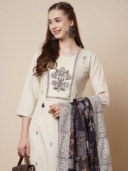 Solid Embroidered Straight Fit Kurta with Pant...