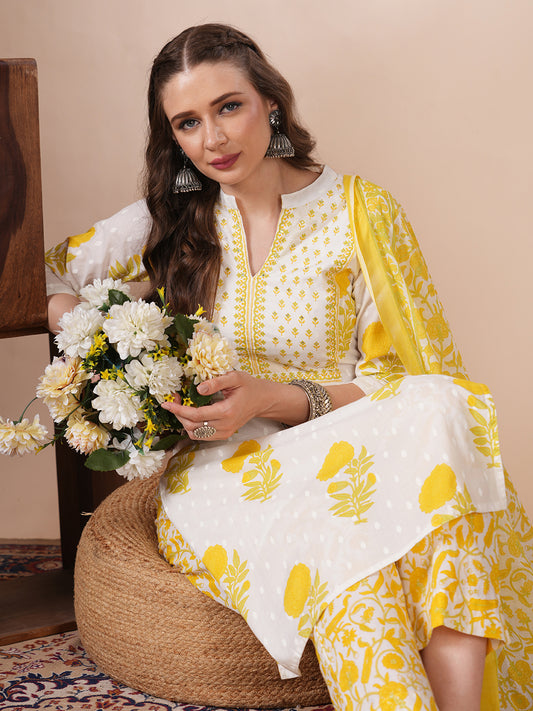 Ethnic Floral Printed Anarkali Flared Kurta with...