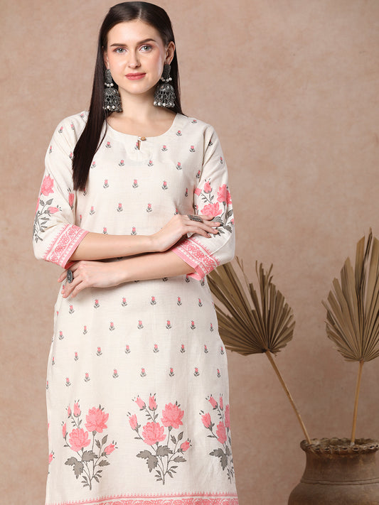 Rose Printed Straight Fit Cotton Flax Co-ord...