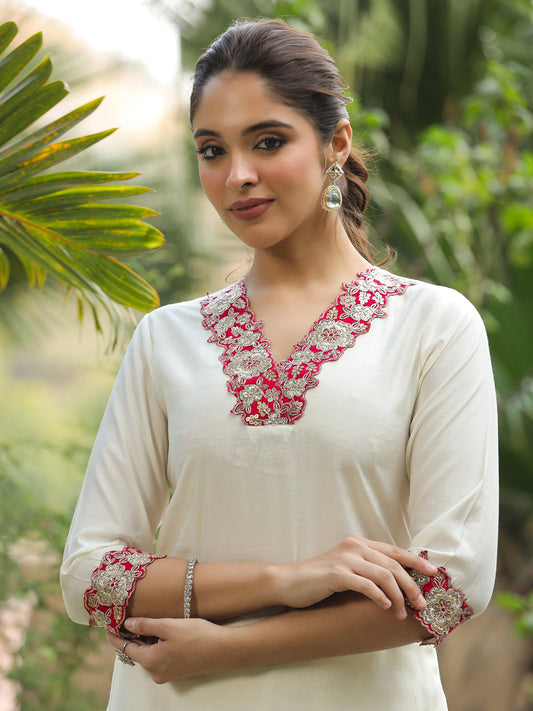 Solid Ethnic Sequin & Zari Embroidered Straight...