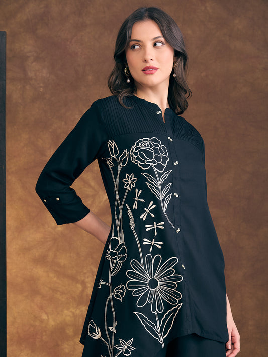 Abstract Floral Embroidered Straight Fit Co-ord Set...