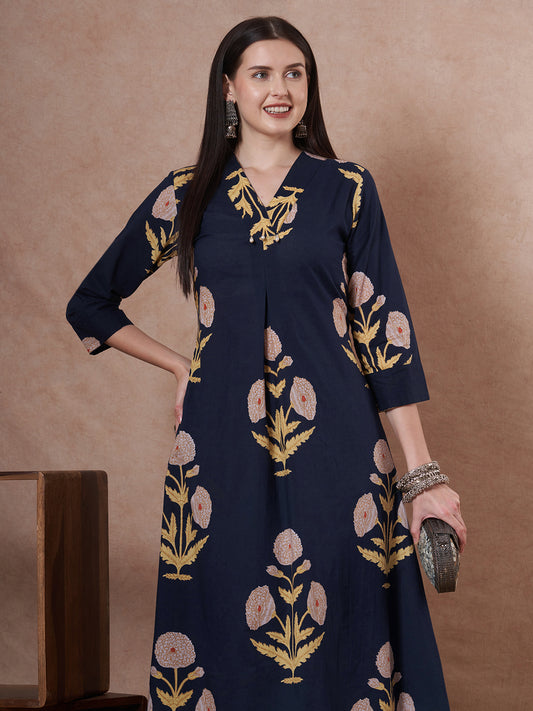 Floral Printed A-Line Paneled Co-ord Set -...