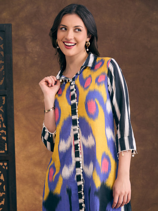 Ethnic Ikat Printed A-Line Co-ord Set -...