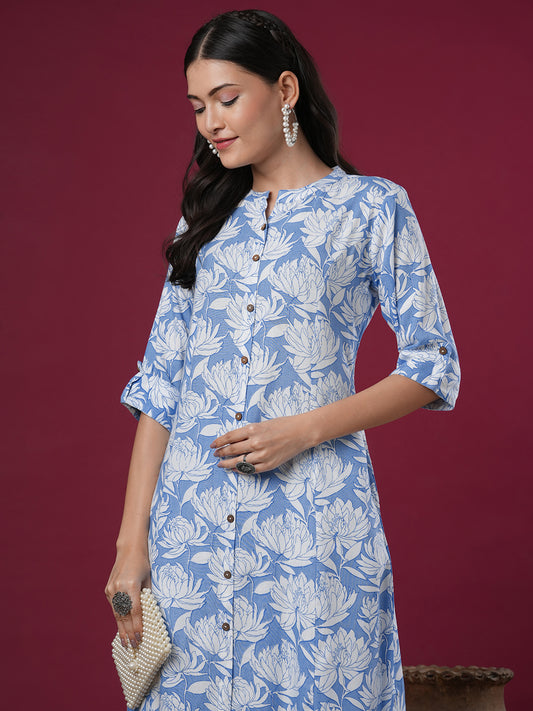 Abstract Floral Printed A-Line Paneled Co-ord Set...