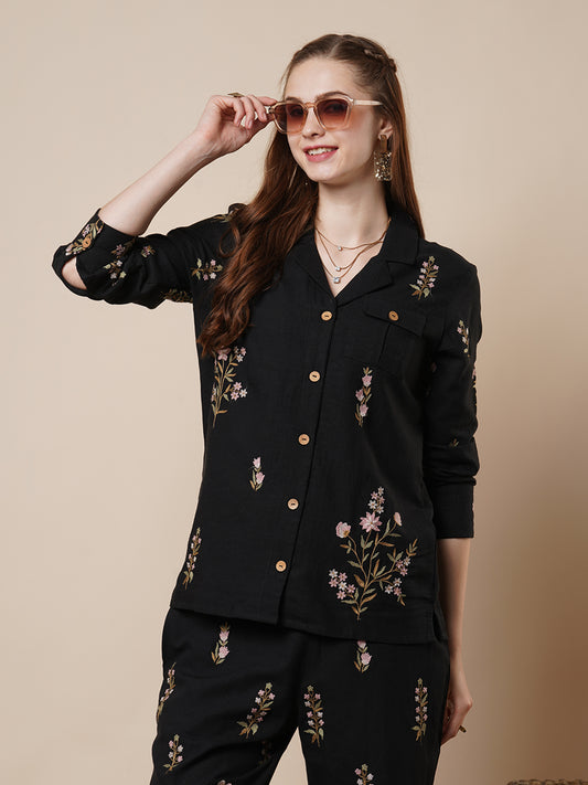 Solid Mirror Work Embroidered Straight Fit Co-ord...