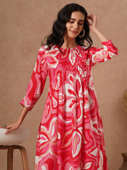 Abstract Printed A-Line Pin Tucked Co-ord Set...