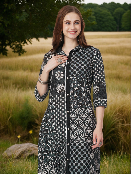 Abstract Ikat Printed A-Line Cotton Flax Co-ord...