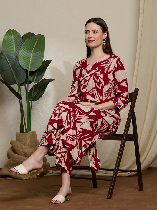 Abstract Printed Straight Fit Co-ord Set -...