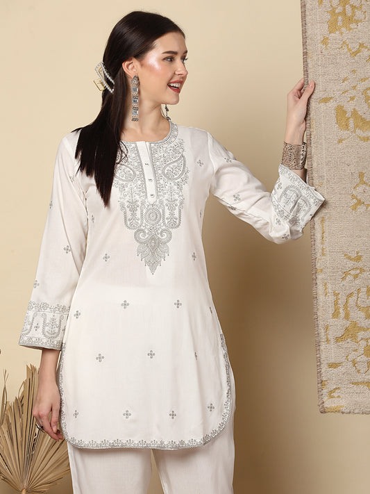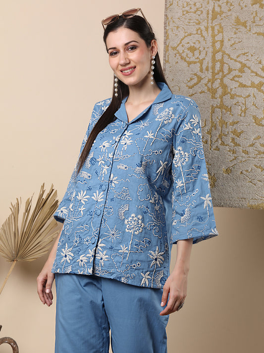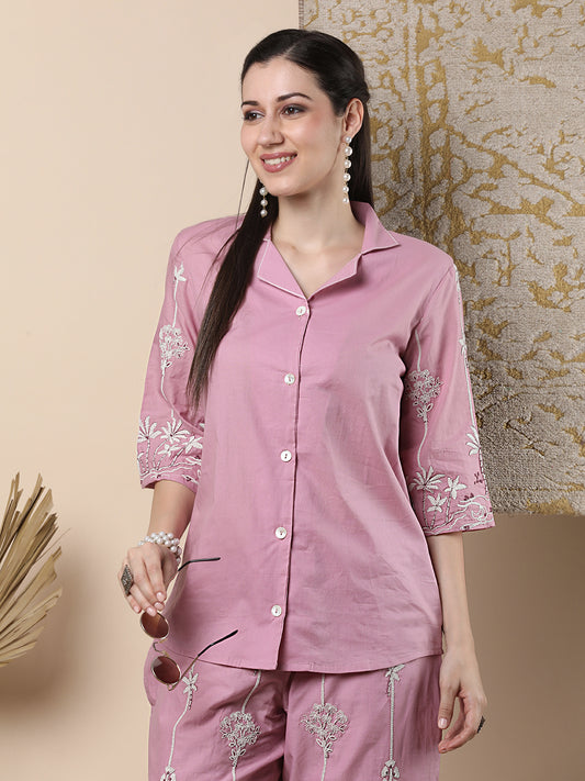 Solid Figurative Thread Embroidered Straight Fit Co-ord...