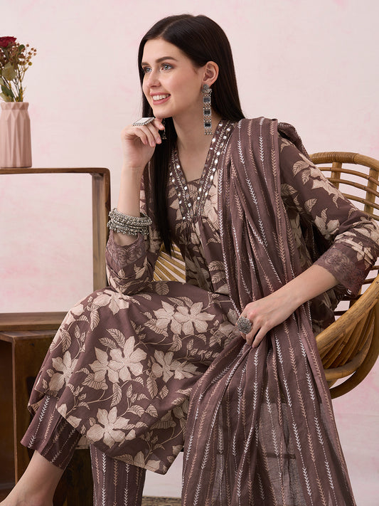 Ethnic Floral Printed Anarkali Flared Kurta with...