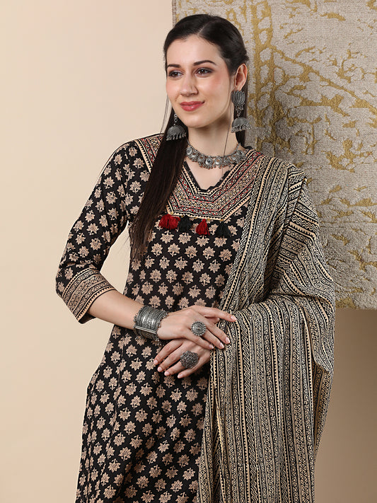 Ethnic Tribal Printed & Embroidered A-Line Kurta...