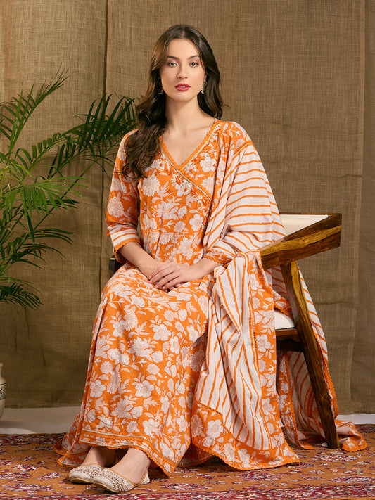 MRP (Inclusive of all taxes)Regular price ₹ 2,499.00₹ 2,499.00 Regular priceUnit price / per₹ 6,299.00Sale priceM L XL 2XL 3XL add to cartSale{"id":7596556812374,"title":"Ethnic Floral Printed \u0026 Hand Embroidered Anarkali with Pant \u0026 Dupatta - Orange","handle":"ethnic-floral-printed-hand-embroidered-anarkali-with-pant-dupatta-orange","description":"\u003ch1\u003eHighlights\u003c\/h1\u003e\n\u003cp\u003e\u003cbr\u003e-Elevate your festive wardrobe with this stunning Ethnic Floral Printed \u0026amp; Hand-Embroidered Anarkali Set in a vibrant orange hue. Crafted from breathable cotton, the ensemble features a gracefully flared Anarkali adorned with delicate floral prints and intricate hand embroidery. A flattering V-neckline, regular sleeves, and elegant crochet lace detailing add a touch of timeless charm. Paired with coordinating straight pants and a lightweight dupatta edged with matching lace, this set is perfect for celebrations, offering effortless elegance with a handcrafted feel.\u003c\/p\u003e\n\u003ch1\u003eFabric \u0026amp; Colour\u003c\/h1\u003e\n\u003cp\u003e\u003cbr\u003eTop Colour: Orange\u003cbr\u003eTop Fabric: Cotton\u003cbr\u003eBottom Colour: Multi\u003cbr\u003eBottom Fabric: Cotton Blend\u003cbr\u003eDupatta Colour: Orange\u003cbr\u003eDupatta Fabric: Cotton Blend\u003c\/p\u003e\n\u003ch1\u003eSpecifications\u003c\/h1\u003e\n\u003cp\u003e\u003cbr\u003eTop Design: Floral print, Ethnic print\u003cbr\u003eTop Craft: Embroidery, Plain and Prints\u003cbr\u003eTop Shape: A-line\u003cbr\u003eNeck: V-Neck\u003cbr\u003eSleeve Length: Three-Quarter Sleeves\u003cbr\u003eTop Length: Calf Length\u003cbr\u003eHemline: Flared\u003cbr\u003e\u003c\/p\u003e\n\u003cp\u003eBottom Type: Trousers\u003cbr\u003eBottom Closure: Slip-On\u003cbr\u003eWaistband: Partially Elasticated\u003c\/p\u003e\n\u003cp\u003eDupatta Pattern: Printed\u003cbr\u003eDupatta Border: Printed\u003c\/p\u003e\n\u003cp\u003eWash Care: Hand Wash\u003c\/p\u003e\n\u003cp\u003eLength (in inches)\u003cbr\u003eKurta – 50, Sleeves – 17,\u003cbr\u003eBottom – 40\u003c\/p\u003e\n\u003cp\u003eModel’s Height: 5’7”. Wearing Size S.\u003c\/p\u003e\n\u003ch1\u003eProduct Information\u003c\/h1\u003e\n\u003cp\u003e\u003cbr\u003eManufactured\/Packed\/Marketed By:\u003cbr\u003eFashor Lifestyle Pvt. Ltd.\u003cbr\u003e28\/30, Sudarshanpura Industrial Area,\u003cbr\u003eJaipur - 302006.\u003cbr\u003eCountry of Origin: India\u003c\/p\u003e","published_at":"2025-07-22T13:58:15+05:30","created_at":"2025-07-22T13:07:19+05:30","vendor":"FASHOR","type":"3P Kurta Set","tags":["2001-3000","2XL","31487","3XL","All Styles","casualwear","colour_orange","craft_embroidery","craft_plain-and-prints","design_ethnic-print","design_floral-print","fabric_cotton","KURTI","kurtis","L","meta-size-chart-","now-trending","shape_a-line","workwear"],"price":249900,"price_min":249900,"price_max":249900,"available":true,"price_varies":false,"compare_at_price":629900,"compare_at_price_min":629900,"compare_at_price_max":629900,"compare_at_price_varies":false,"variants":[{"id":42495669043286,"title":"M","option1":"M","option2":null,"option3":null,"sku":"38-STB31487F5FS","requires_shipping":true,"taxable":false,"featured_image":{"id":34723094200406,"product_id":7596556812374,"position":9,"created_at":"2025-07-22T13:07:56+05:30","updated_at":"2025-07-22T13:09:08+05:30","alt":null,"width":1080,"height":1440,"src":"\/\/fashor.com\/cdn\/shop\/files\/31587_2.jpg?v=1753169948","variant_ids":[42495669043286,42495669076054,42495669108822,42495669141590,42495669174358]},"available":false,"name":"Ethnic Floral Printed \u0026 Hand Embroidered Anarkali with Pant \u0026 Dupatta - Orange - M","public_title":"M","options":["M"],"price":249900,"weight":0,"compare_at_price":629900,"inventory_quantity":0,"inventory_management":"shopify","inventory_policy":"deny","barcode":"","featured_media":{"alt":null,"id":26973393780822,"position":9,"preview_image":{"aspect_ratio":0.75,"height":1440,"width":1080,"src":"\/\/fashor.com\/cdn\/shop\/files\/31587_2.jpg?v=1753169948"}},"requires_selling_plan":false,"selling_plan_allocations":[],"quantity_rule":{"min":1,"max":null,"increment":1}},{"id":42495669076054,"title":"L","option1":"L","option2":null,"option3":null,"sku":"40-STB31487F5FS","requires_shipping":true,"taxable":false,"featured_image":{"id":34723094200406,"product_id":7596556812374,"position":9,"created_at":"2025-07-22T13:07:56+05:30","updated_at":"2025-07-22T13:09:08+05:30","alt":null,"width":1080,"height":1440,"src":"\/\/fashor.com\/cdn\/shop\/files\/31587_2.jpg?v=1753169948","variant_ids":[42495669043286,42495669076054,42495669108822,42495669141590,42495669174358]},"available":true,"name":"Ethnic Floral Printed \u0026 Hand Embroidered Anarkali with Pant \u0026 Dupatta - Orange - L","public_title":"L","options":["L"],"price":249900,"weight":0,"compare_at_price":629900,"inventory_quantity":1,"inventory_management":"shopify","inventory_policy":"deny","barcode":"","featured_media":{"alt":null,"id":26973393780822,"position":9,"preview_image":{"aspect_ratio":0.75,"height":1440,"width":1080,"src":"\/\/fashor.com\/cdn\/shop\/files\/31587_2.jpg?v=1753169948"}},"requires_selling_plan":false,"selling_plan_allocations":[],"quantity_rule":{"min":1,"max":null,"increment":1}},{"id":42495669108822,"title":"XL","option1":"XL","option2":null,"option3":null,"sku":"42-STB31487F5FS","requires_shipping":true,"taxable":false,"featured_image":{"id":34723094200406,"product_id":7596556812374,"position":9,"created_at":"2025-07-22T13:07:56+05:30","updated_at":"2025-07-22T13:09:08+05:30","alt":null,"width":1080,"height":1440,"src":"\/\/fashor.com\/cdn\/shop\/files\/31587_2.jpg?v=1753169948","variant_ids":[42495669043286,42495669076054,42495669108822,42495669141590,42495669174358]},"available":false,"name":"Ethnic Floral Printed \u0026 Hand Embroidered Anarkali with Pant \u0026 Dupatta - Orange - XL","public_title":"XL","options":["XL"],"price":249900,"weight":0,"compare_at_price":629900,"inv