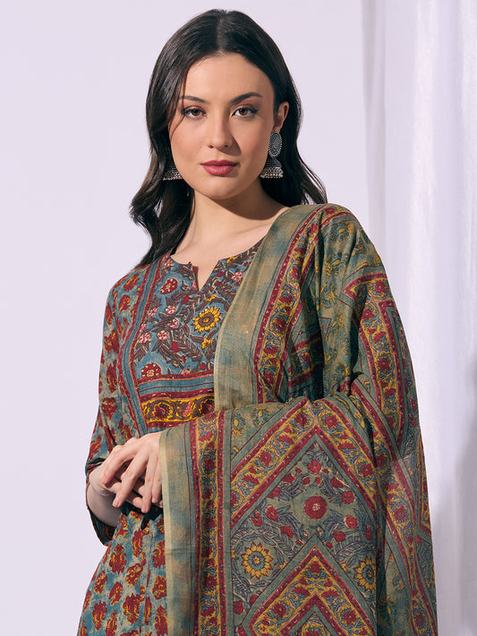 Ethnic Floral Printed & Embroidered Anarkali Kurta...