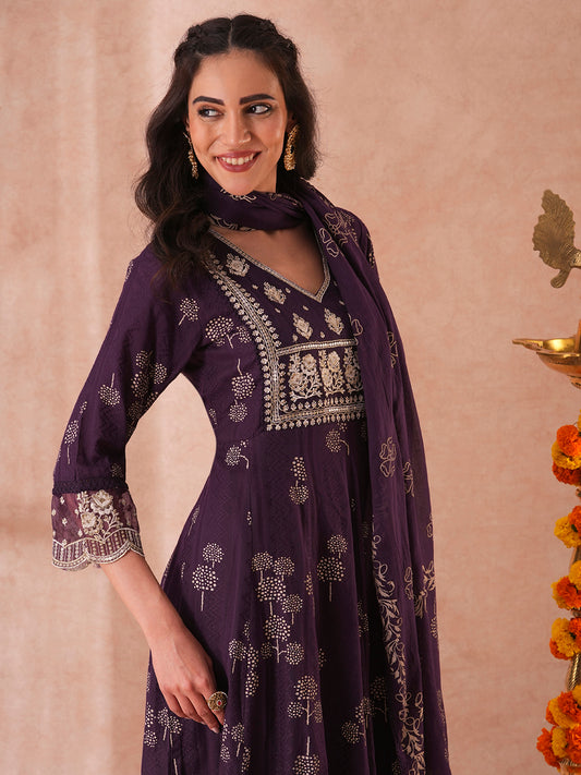 Ethnic Printed Embroidered Anarkali Flared Kurta with...