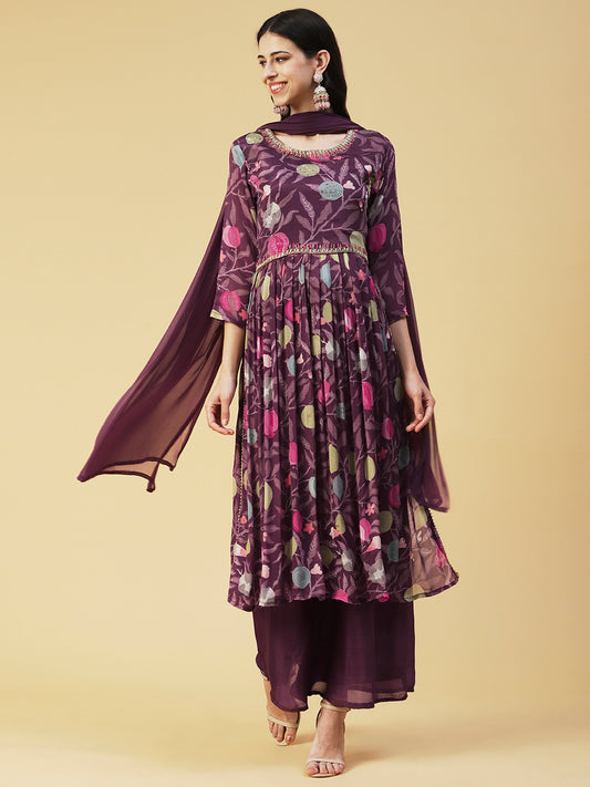Ethnic Printed & Hand Embroidered Flared Maxi...